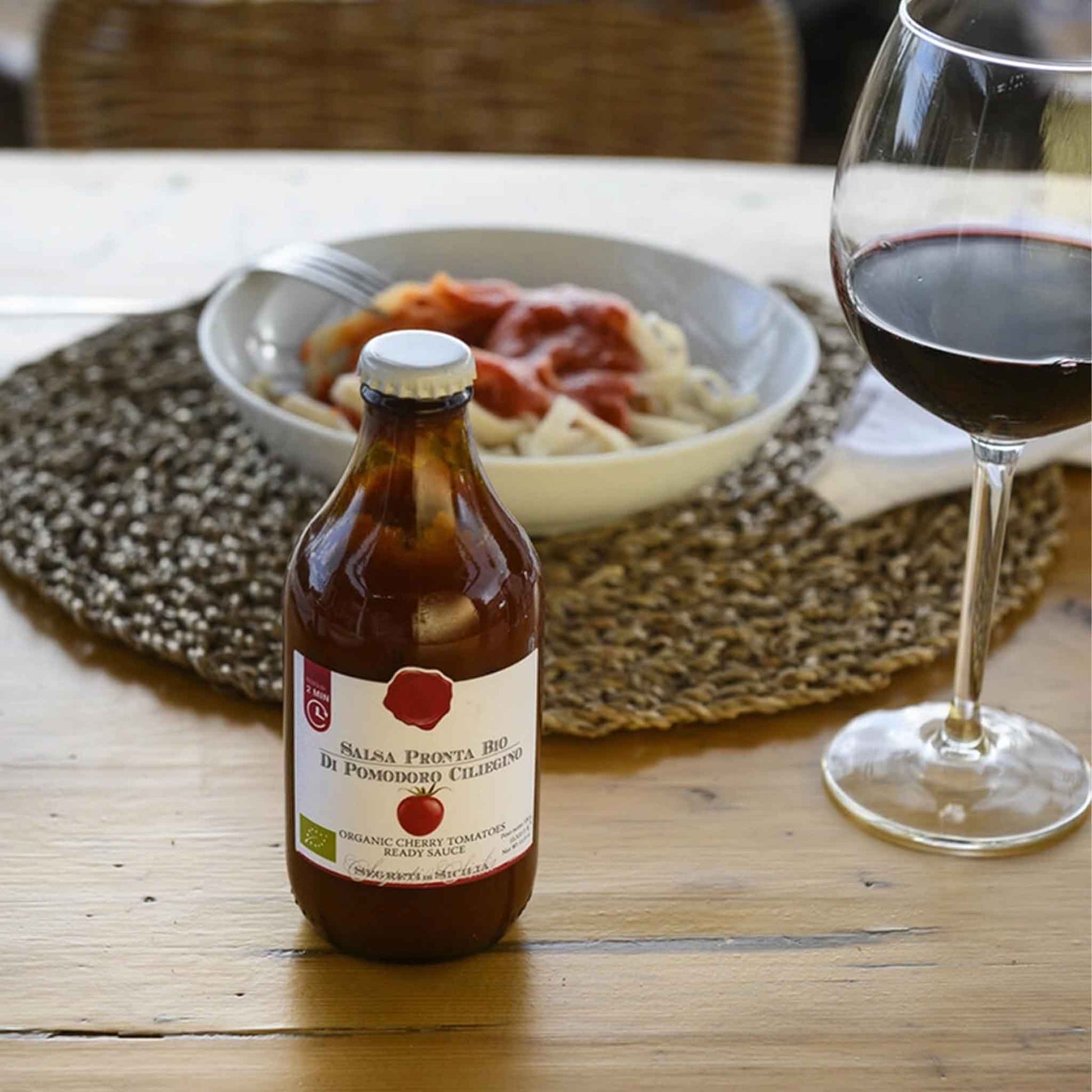Süß und saftig wie sizilianische Sonne. Die Bio Kirschtomatensauce von Frantoi Cutrera wird aus Ciliegino-Kirschtomaten hergestellt, die ausschließlich im Südosten Siziliens geerntet werden – ihrer Heimat. Der natürlich süße und intensive Geschmack wird in dieser Sauce konzentriert, zubereitet nach der Tradition der sizilianischen Sommerkonserven. Die Kirschtomatensauce schmeckt toll auf Pasta wie Tagliatelle oder Spaghetti, aber auch auf Pizza, als Beilage oder zu Fleisch- und Fischgerichten. Frantoi Cutrera Segreti di Sicilia – authentisch sizilianisch in Bio-Qualität.