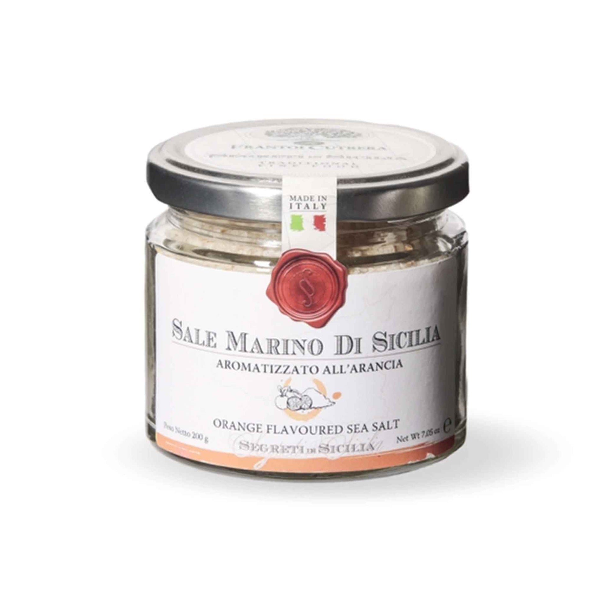 Salz mit Orangenduft. Dieses Orangen-Meersalz von Frantoi Cutrera stammt aus den historischen und prestigeträchtigen Salinen Siziliens. Handwerklich hergestellt und verfeinert mit getrockneten Orangenschalen – typisch für die Insel. Das sizilianische Meersalz wird roh verwendet und empfiehlt sich für Fisch, helles und rotes Fleisch. Funktioniert aber auch überraschend gut, um die süßen Aromen von Kuchen zu betonen. Frantoi Cutrera verbindet traditionelles Meersalz mit mediterranen Zitrusaromen – eine besondere Note für deine Gerichte.